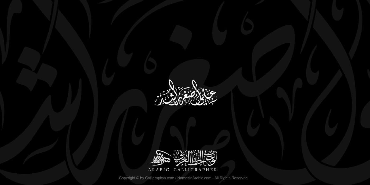 نص اللوحة: إسم شخصي “علي أصغر راشد” بخط الديواني العربي