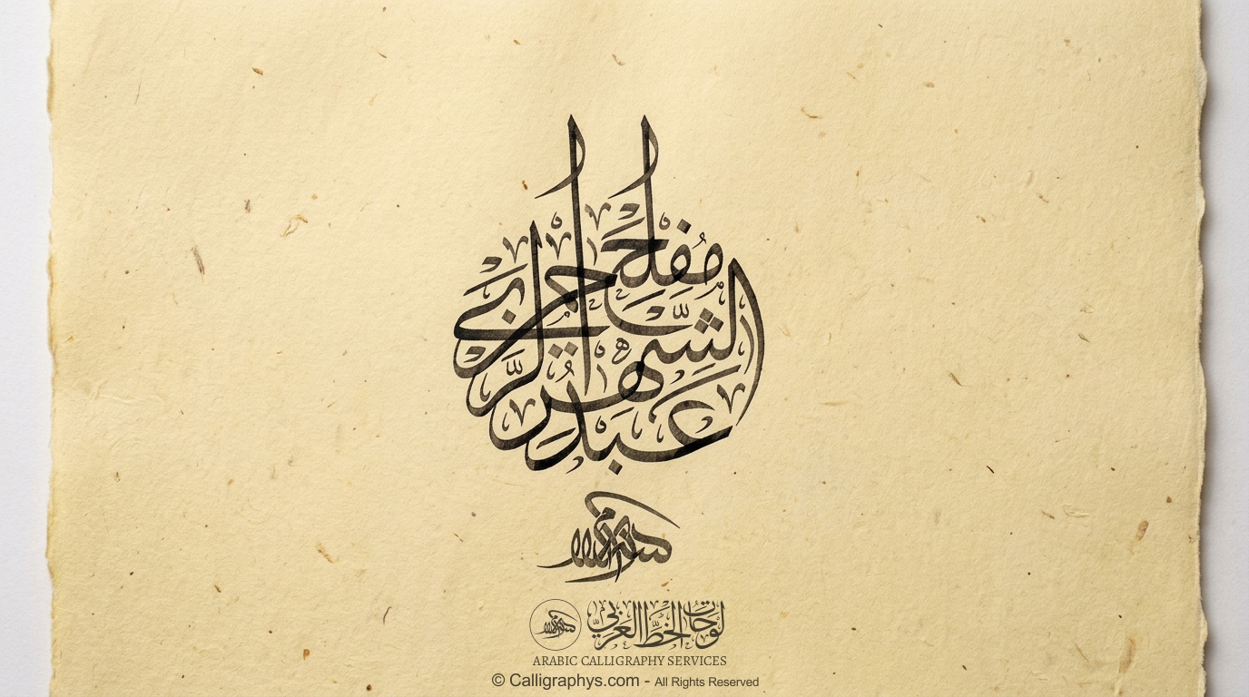 This decorative gallery section showcases Arabic calligraphy adorned with decorative elements, featuring scripts such as Thuluth and Diwani, among others. It diverges from the traditional classic style, presenting diverse scripts and calligraphy artwork adorned with specific shapes and unique distinctive appearances. Explore our exquisite collection, featuring distinctive calligraphy not found elsewhere, highlighting the uniqueness of our work. We specialize in designing a customized artistic Arabic calligraphy for clients worldwide. The examples displayed here offer a glimpse into the variety and creativity of our work, demonstrating the range of Arabic calligraphy art we can write and create.