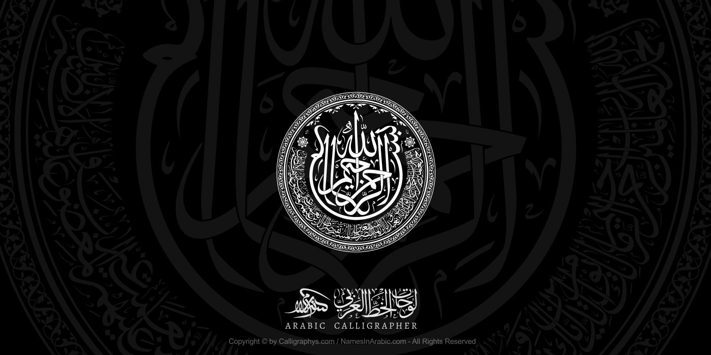 In this stunning and distinctive artistic representation of Arabic calligraphy in the Thuluth script, the Bismillah (البسملة) , translated to “In the name of God, the Most Gracious, the Most Merciful – بسم الله الرحمن الرحيم” is presented in a unique composition. The first word, “Bism,” meaning “In the name of,” is written in a special manner. The letter Sin extends in a curved, half-circular shape, forming a border that gracefully carries the rest of the Bismillah verse. This design takes the shape of a circular vase with an open top, adding to its uniqueness. Adjacent to the curved Bismillah calligraphy, Surah Al-Fatiha (سورة الفاتحة), the opening chapter of the Quran comprising 7 verses, unfolds in a round, curved shape. Beginning from the top sides of the Bismillah, it is meticulously written in a single line using the beautiful Thuluth classical script. Arabesque patterns delicately adorn the beginning and end of the verse, enhancing its visual appeal. Thick parallel lines frame the verse in a perfect circular shape, and a seamless arabesque pattern, taking on a circular round shape, envelops the entire calligraphy. This calligraphy is not only beautiful and majestic but also exceptionally unique. Its intricate details, combined with a special and distinctive writing style, make it a one-of-a-kind masterpiece, unparalleled by any similar calligraphy.