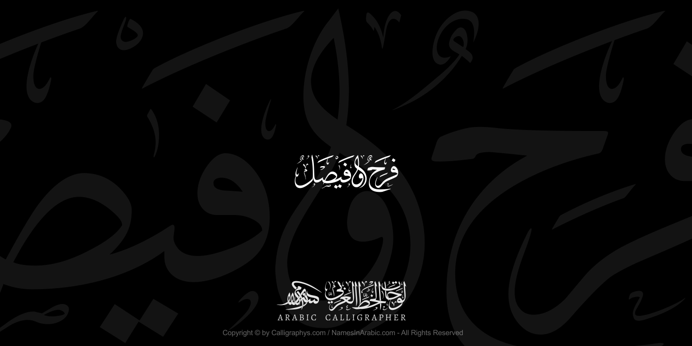 نص اللوحة: إسم “فرح و فيصل” بخط الثلث العربي مع الواو في المنتصف بالخط الديواني